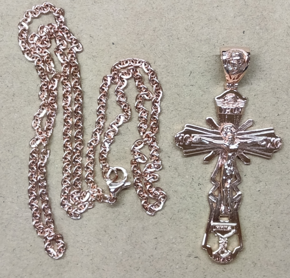 ✝ Collar con colgante crucifijo ortodoxo chapado en oro